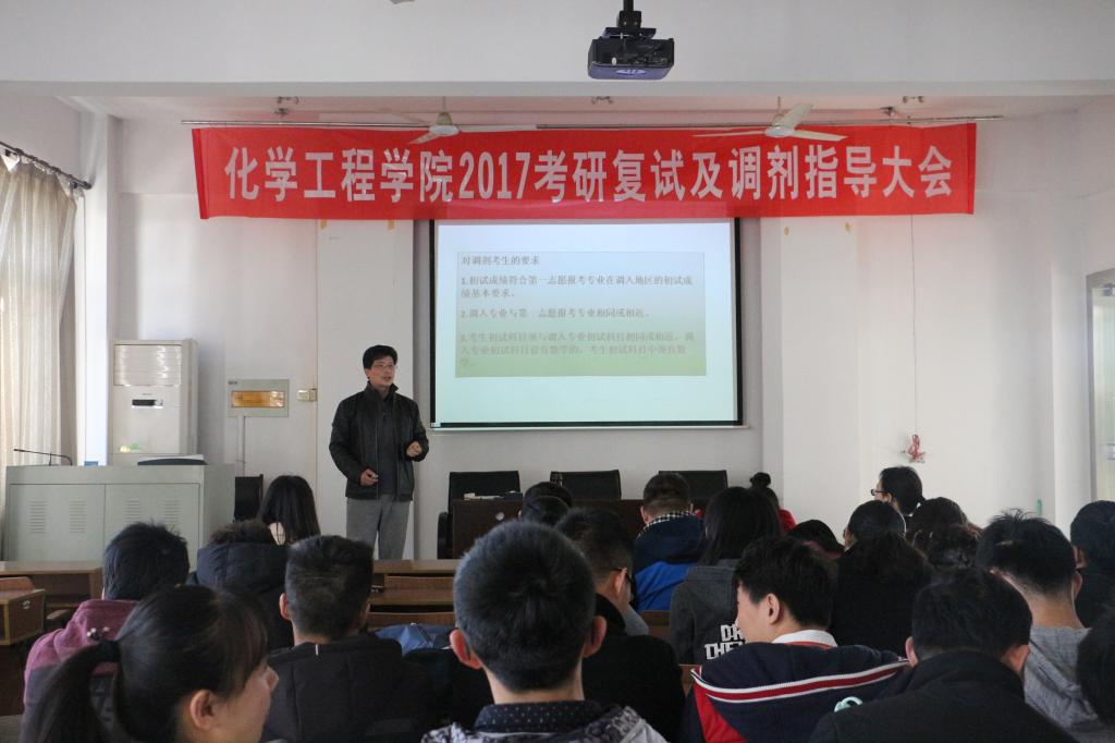 3月18日下午2:30,化学工程学院于化工楼二楼会议厅召开2017考研复试及调剂指导大会。学院经理童志伟亲临此次大会并做出了相关指导,院团委书记马昌、辅导员王学梅、办公室贾海红、材料班老师马娟娟和员工会主席王晶晶出席本次大会。