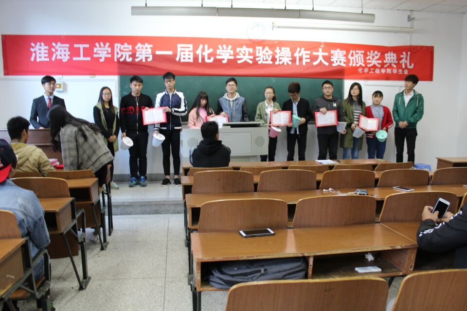 4月7日17时,化学工程学院于主楼108室举行了第一届化学实验操作大赛颁奖典礼。化院团委书记马昌老师、辅导员陈志老师作为特邀嘉宾出席此次颁奖典礼,员工会副主席李昕宇、员工会学习部部长史敏参与颁奖,员工会学习部干事黄伟杰主持仪式。