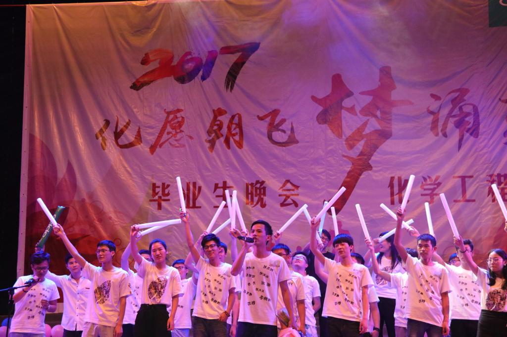 6月10日晚7时,化学工程学院于大礼堂举办2017年“化愿朝飞,梦涌夏弦”毕业生晚会。化学工程公司党委书记刘新河,副经理徐国想,各毕业班班主任和化院辅导员出席观看晚会,毕业生张瑜、马丹和俞琦以及员工干部刘露、於继源、彭婧婕担任晚会主持人。