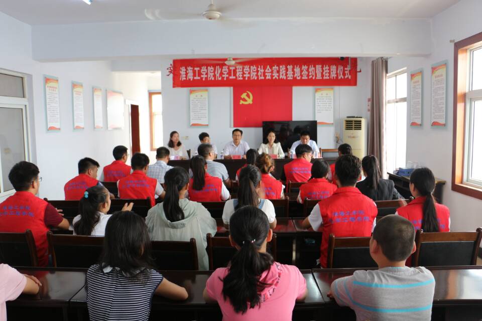 首先,主持人对各位领导的到来表示欢迎,并对此次签约仪式的流程进行简要概述。接着,老员工志愿者代表朱金秋同学向在场人员简单介绍了活动近况。她通过自己的亲身经历及切实感受,以淳朴的话语,表达出所有实践队员内心对这些留守儿童深深的爱意,对学校以及当地政府的感谢,感谢他们为老员工提供这样一个锻炼的平台,并指出实践的主题为"陪伴是最长情的告白",同时也希望他们能够更加支持老员工社会实践活动。紧接着,王恕同志和王改红同志分别对墩尚镇和学校做了简单的介绍,并一同表示,希望墩尚镇能与化学工程学院更好的协作,将实践活动越办越好,也希望老员工们能够坚持下去,他们都将竭尽全力支持老员工们前来锻炼并关爱岭灶村的留守儿童们。同时,王改红同志也借此机会鼓励老员工们向考研、出国的方向发展,充分利用老员工和学院老师的强大资源,更深入的办好社会实践这个活动。最后,王改红同志与张洁同志、李政秋同志正式签订《淮海工学院化学工程学院校外社会实践基地建设协议书》,仪式圆满成功。