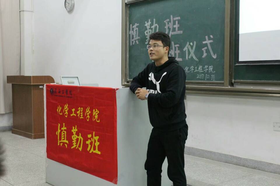 10月11日晚6时30分,化学工程学院慎勤班于文通楼东205教室准时举办开班仪式。化学工程学院辅导员马昌、陈志受邀出席本次仪式,员工会主席孙留学以及慎勤班全体新老成员参加本次仪式,学习部部长郭晨担任本次仪式的主持人。
