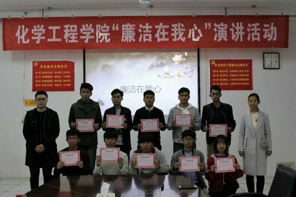 11月8日下午4时30分,化学工程学院于主楼1006室举办以“廉洁在我心”为主题的演讲活动。党务办党务秘书杨文娜与辅导员陈志出席本次活动,并与化学工程学院员工组织负责人共同担任评委,员工会主席孙留学担任本次活动的主持人。