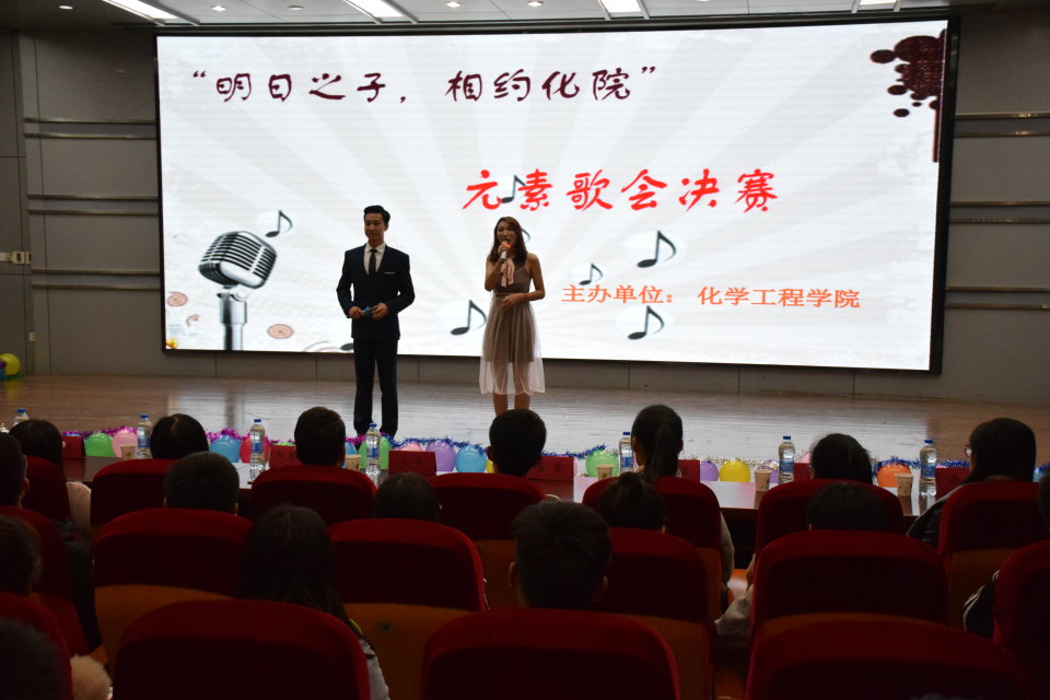 11月14日19时,化学工程学院于艺术楼报告厅举办“明日之子,相约化院”元素歌会决赛。校员工处耿盈晴老师、学院辅导员王学梅、马昌出席观看本次比赛,员工组织负责人和全体大一同学观看。蔡淑仪、王仕伟、张金荣、苏恩军和来自土木学院的神秘嘉宾曾于担任本次比赛评委,黄罗鑫、彭婧婕担任主持人。
