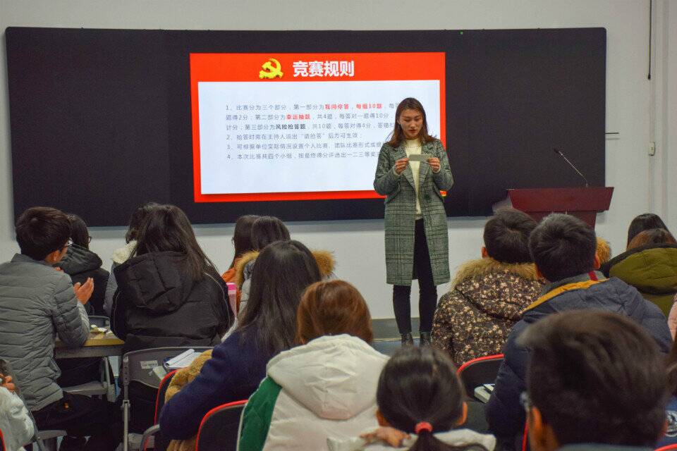 12月10日晚6时,淮海工学院团委新媒体发展中心于苍梧校区老员工活动中心团委培训室举办十九大知识竞赛决赛,校团委新媒体发展中心主任周嘉琪,副主任李曼、万继杰,办公室部长徐晓妍出席此次活动,办公室副部长彭婧婕担任比赛主持人。在此次比赛中,化学工程学院代表队团结协作,积极应对,最后荣获优秀奖。