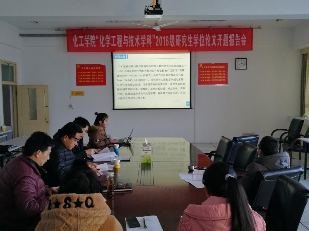 3月19日下午,化工学院“化学工程与技术”学科2016级硕士研究生开题报告会在教学主楼如期举行,12名研究生参加并汇报了各自的研究课题,2017级研究生参加学习。报告会分为两组,分别由化工学院经理童志伟教授和副经理张东恩教授担任组长,李树安教授、张田林教授、张珍明教授、杨涛教授、张源源副教授及陶传洲副教授担任此次报告会的评审专家。
