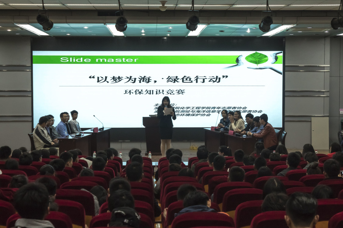 4月22日18时,化学工程学院青年志愿者协会与测绘与海洋信息学院青年志愿者协会、老员工生态环境保护协会于艺术楼报告厅合力举办环保知识竞赛决赛。本次活动很荣幸邀请到化学工程学院辅导员陈志老师与测绘与海洋信息学院团委副书记周小晓老师,以及校青协副理事长谷梦娟、化院青协会长杨莉、测绘青协会长杨青、环协会长杜文等担任活动评委,部分学院青协志愿者担任场内工作人员。