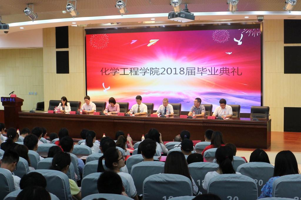6月22日下午4时,化学工程学院于会议中心黄海厅举行2018届毕业典礼暨学士学位授予仪式。化学工程学院经理童志伟、党委书记刘新河、副经理徐国想、刘霖、张东恩出席了毕业典礼,各系正副主任、辅导员、毕业班班主任、毕业班全体员工参加。海洋资源与环境公司党委书记陈丽作为特邀嘉宾出席,毕业典礼由公司党委副书记王改红主持。
