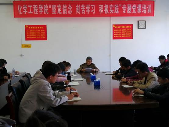 2018年10月31日下午,化学工程学院关工委副主任、老党员史继斌教授为发展对象、入党积极分子上《坚定信念,刻苦学习,积极实践》专题党课。
