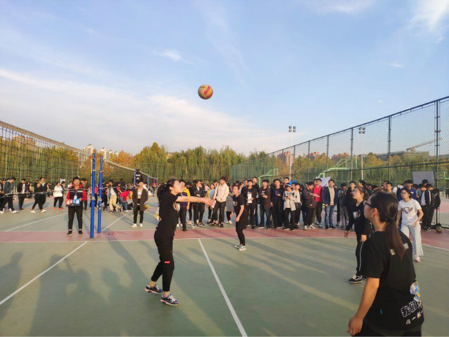 很快来到本场比赛的赛点,观众们的积极性都被调动了起来。“好球”终于不再只是球员自我激励的口号了,观众们也跟着大声的喊了起来,鼓也擂的更起劲了。不到最后胜负难定,两队队员各自团结一致,信心满满,在经过15分钟激烈的角逐后,化学工程学院略胜一筹。最终,化学工程学院排球队以2:1的比分成功挺进四强。