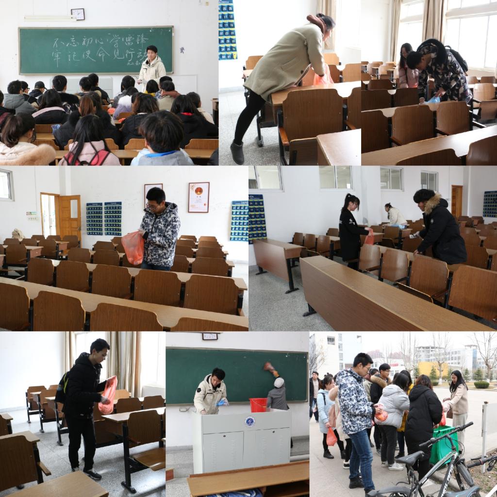 中午12时30分,同学们先于文通楼109室进行活动的考勤签到。活动伊始,鲍玉鹏就此次活动进行了具体而详尽的介绍和安排。接着,按照活动安排表的分组分工,党员和积极分子们各自开始进行文通楼教室、走廊等地的垃圾清扫工作,他们认真细致的清扫每一个角落,确保不落下任何细小的垃圾,受到了文通楼保洁阿姨们的一致赞扬。在一阵忙碌过后,教室和走廊愈加干净整洁,焕然一新。13时30分,同学们集合于文通楼前合影留念,至此活动圆满结束。
