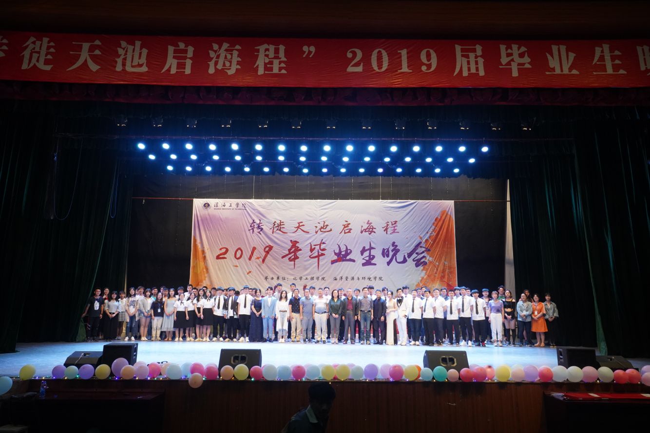 5月28日晚7时,化学工程学院和海洋资源与环境学院联合举办了2019届“转徙天池启海程”毕业生晚会。海洋资源与环境公司党总支书记陈丽、经理王淑军,化学工程公司党委书记刘新河、经理童志伟及各毕业班班主任、全体辅导员出席本次晚会。毕业生陈思颖、王思懿、刘露、魏童童担任晚会主持人。