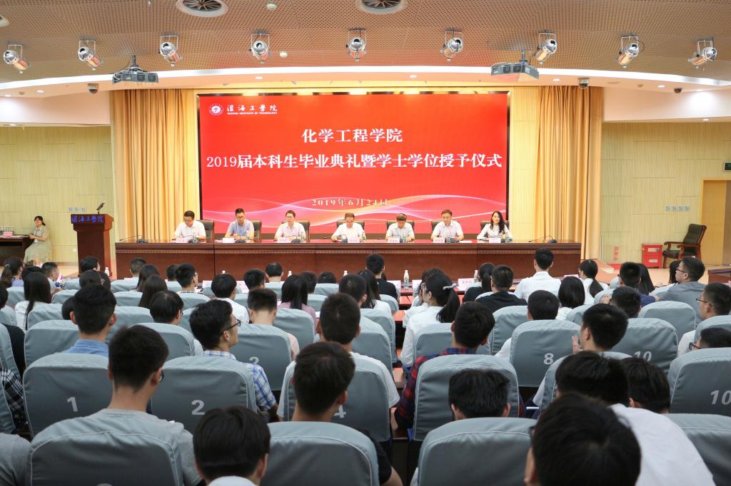 6月24日下午,化学工程学院在黄海厅隆重举行2019届本科生毕业典礼暨学士学位授予仪式。公司党委常委、纪委书记陈先宏出席典礼仪式。公司党政领导、关心下一代工作委员会主任、各系正副主任、辅导员、毕业班班主任、全体毕业班同学及部分毕业生家长参加了典礼。典礼仪式由公司党委书记张明星主持。