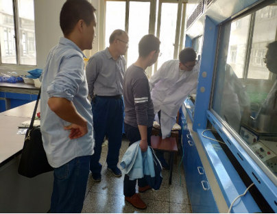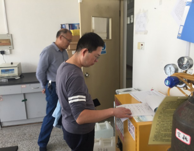 检查人员一行查看了各实验室的安全情况,重点检查了以下内容:安全管理组织体系、规章制度及责任落实情况;实验安全记录、设备使用记录、工作记录、化学品、危化品使用台账等;危化品、特种设备管理和使用情况。