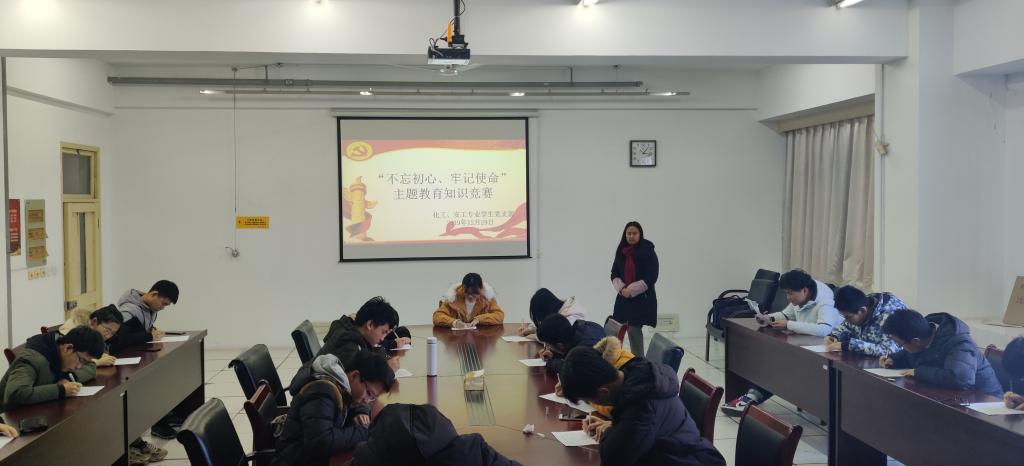 12月29日下午2时整,化学工程学院化工安工专业员工党支部于主楼1006举办“不忘初心、牢记使命”主题教育知识竞赛,全体党员参加此次竞赛,支部书记王学梅主持本次活动。