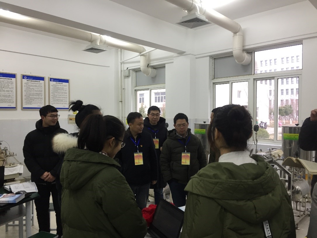 院领导一行人还来到化工原理实验室,看望了寒假留校参加全国老员工化工设计竞赛的员工,仔细询问了同学们的竞赛准备情况、赛程进度以及比赛中可能存在的问题,同时也表扬了同学们的实践创新精神,鼓励参赛人员认真准备并送上了赛前祝福。