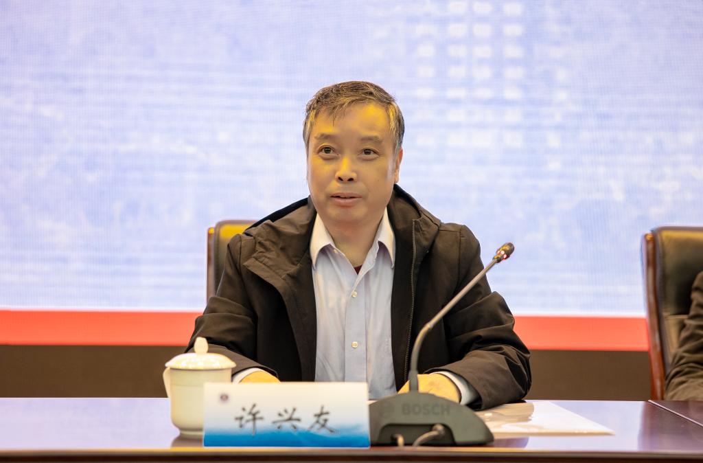 许兴友代表学校对胡院士的到来表示热烈欢迎,并对胡院士一直以来对学校的关心和支持表示感谢。许兴友介绍了胡院士的简历及科研成就,对胡院士取得的令人瞩目的科研成就表达了敬意,鼓励在场师生要以胡院士为榜样,树立远大理想,汲取奋进力量,为学校高质量发展做出新的贡献。