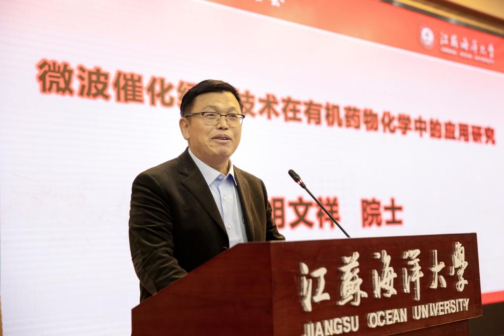 10月19日下午,俄罗斯自然科学院外籍院士胡文祥应邀来公司作学术交流,在会议中心黄海厅胡文祥院士作题为“微波催化绿色技术在有机药物化学中的应用研究”的学术报告。董事长宁晓明出席报告会,副董事长许兴友主持报告会,公司党政领导及师生代表150余人参加了报告会。