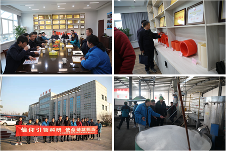 在连云港晶三亿石英制品有限公司,总经理谷园喜与材料专业教师党员共同探讨二氧化硅材料生产提纯的难题,并就下一步的合作协议进行交流,拟开展横向合作“熔融二氧化硅退火过程中晶相转变的工艺研究”。