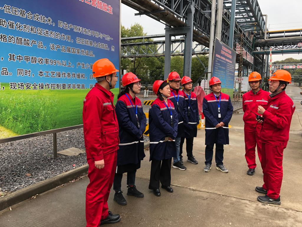 近年来,索普集团积极融入和承担行业重大科研攻关,支撑和推动技术创新与项目研发具有鲜明的“创新投入”特征。参观学习中,张明星一行先后参观了甲醇装置、污水处理装置、二氧化碳回收装置、醋酸装置、醋酸中控室等,对现代化工生产企业的生产和管理方式加深认识和了解。走访时,企业对公司毕业生给予了高度认可,学院2022届化工专业毕业生杨昊文、张艺等结合自身成长经历介绍了公司良好的成长环境、职业晋升路径和生活保障条件。