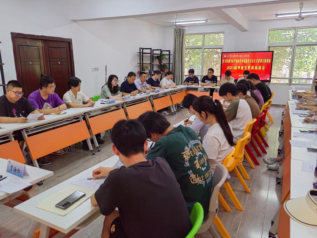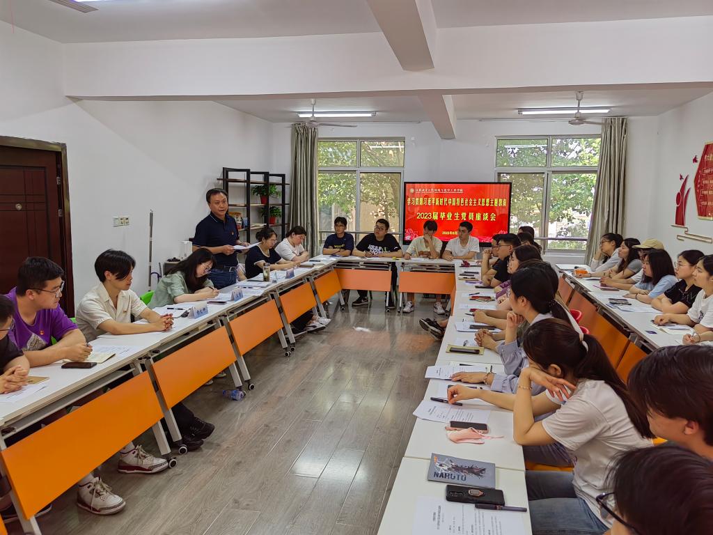 座谈会后,张明星给全体毕业生党员讲授专题党课。他希望大家牢记习近平总书记对新时代青年的嘱托,坚定不移听党话、跟党走,立志做有理想、敢担当、能吃苦、肯奋斗的新时代好青年,让青春在全面建设社会主义现代化国家的火热实践中绽放绚丽之花。他要求毕业生党员以主题教育为契机,从“坚持理论学习、强化思想武装,牢记党员身份、做到严于律己,加强本领锻炼、提升工作能力,坚守党员职责、发挥带头作用”等方面,进一步提高党性修养,充分发挥党员先锋模范作用,以更加饱满的热情和昂扬的斗志投入到未来的学习和工作中。最后,张明星寄语毕业生“与理想相伴、与时代同行”“持续学习、挑战自我”“爱国敬业、奉献社会”三句嘱托,表达了学院对全体毕业生的成长关心及殷殷期盼。