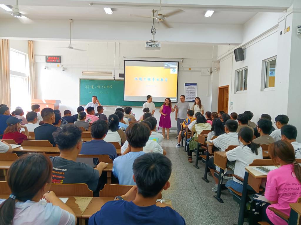 环工专业教育系主任于婷婷、孔静及班主任们出席活动,此外还有幸邀请到江苏省石化废水(污泥)处理工程技术研究中心主任、正高级工程师夏季春为大家作报告。活动伊始,夏季春结合自身数十载的求学经历,激励新生勤勉学习当如马踏平川。之后,夏季春为大家详细讲解了环境工程专业未来的就业前景和就业方向,为新生们拨开云雾。随后,新生们上台分享了自己对大学四年的职业规划和人生打算。夏季春勉励大家在本科学习阶段要提升专业认同感,在磨炼技能的同时还要培养开拓创新、勇挑重担的精神,并为积极分享的员工赠送了书籍。