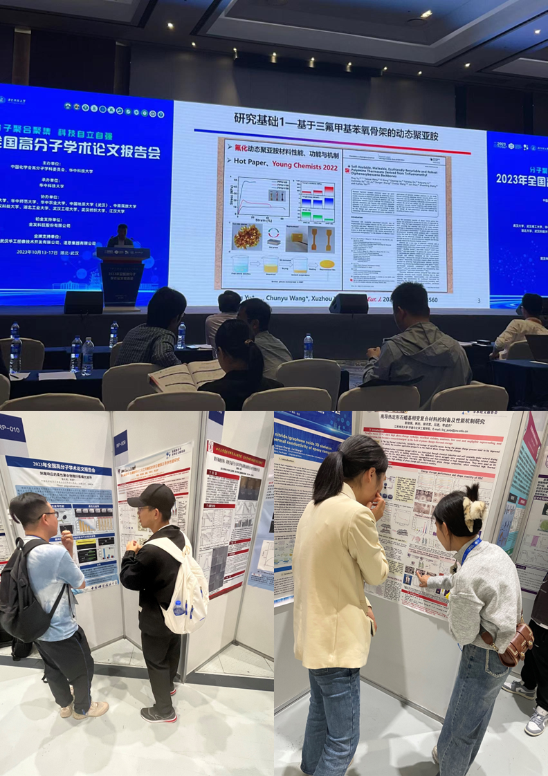 2023年全国高分子学术论文报告会于10月13-17日在武汉举行,大会由中国化学会高分子学科委员会和华中科技大学共同主办,华中科技大学承办,来自全国各地的6000余人参加了此次大会,其中有两院院士24人,长江学者、杰青、国家高层次人才计划专家200余人。会议共有大会报告8个,邀请报告422个,口头报告495个,快闪报告294个。公司青年教师宇平博士,研究生郭俊瑕、韩旭、王海跃和李柏江参加了本次会议。