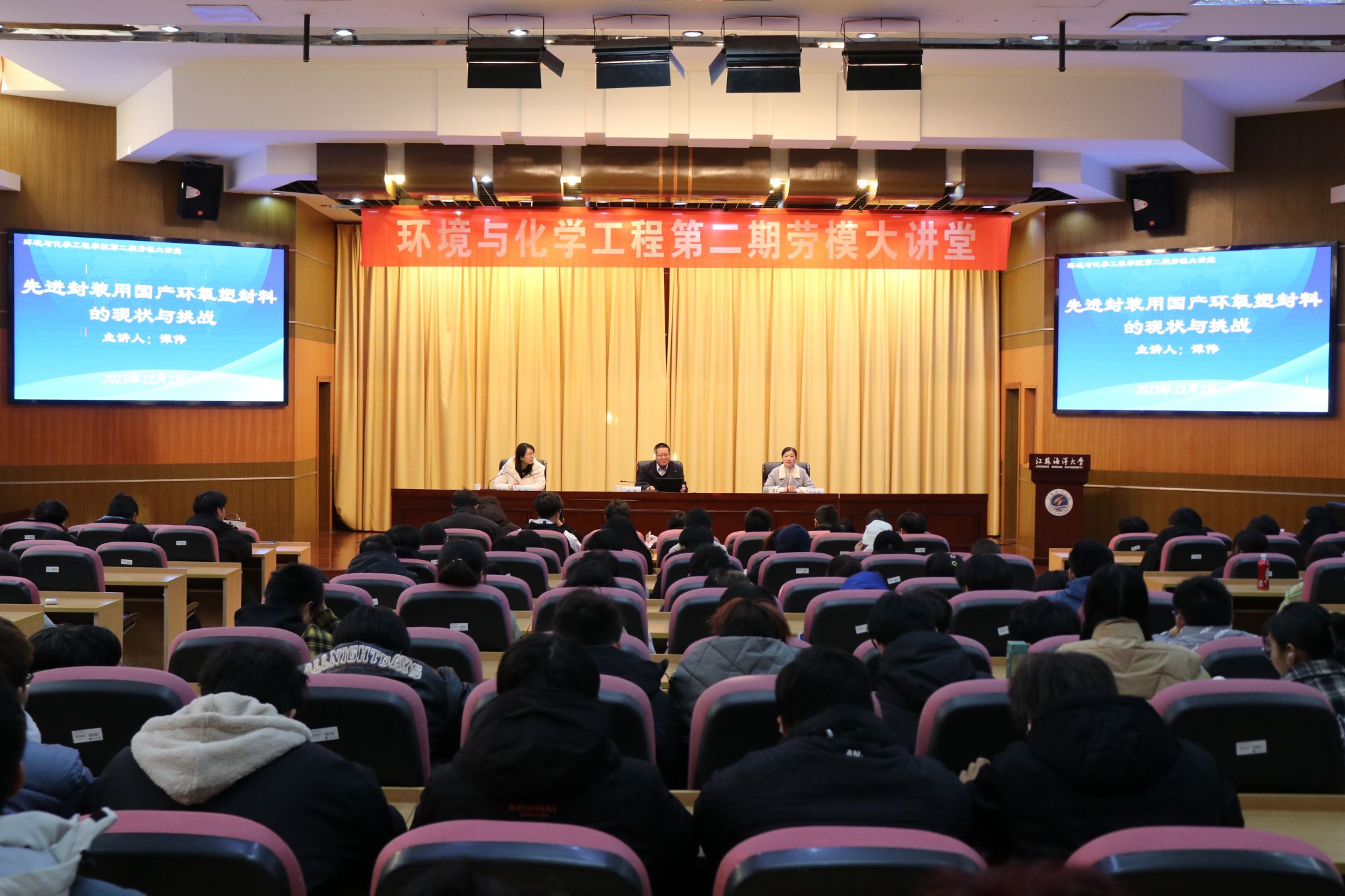 为弘扬劳模工匠精神,积极推进劳动育人工作,将劳模精神、劳动精神、工匠精神融入新时代劳动教育全过程,12月2日下午,威廉希尔williamhill在文博楼报告厅举办了第二期劳模大讲堂活动,本次大讲堂邀请江苏省五一劳动奖章获得者、江苏华海诚科新材料股份有限公司研发部经理谭伟作为主讲人。报告会由副经理马娟娟主持,公司党委副书记王静及学院师生代表180余人参加了报告会。
