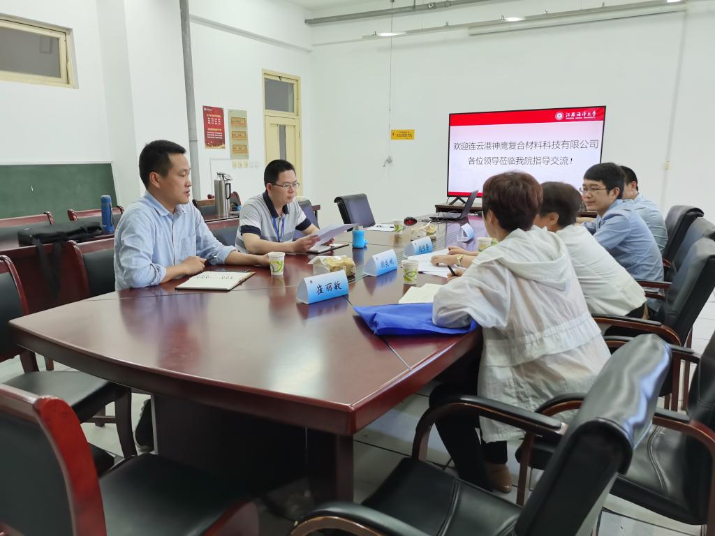 6月9日上午,连云港神鹰碳纤维复合材料科技有限公司(神鹰复材)总经理周恒香、副总经理尚武林和顾良娥等人来公司开展产学研项目交流。公司经理张东恩教授、副经理陶传洲教授和年轻教师骆昱晖博士参加了来访调研。