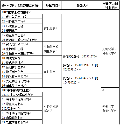 2021年“化学工程与技术(0817)”和“材料科学与工程(0805)”全日制学术型研究生有调剂名额,接收专业相同或相近的考生调剂公司,具体信息如下:
