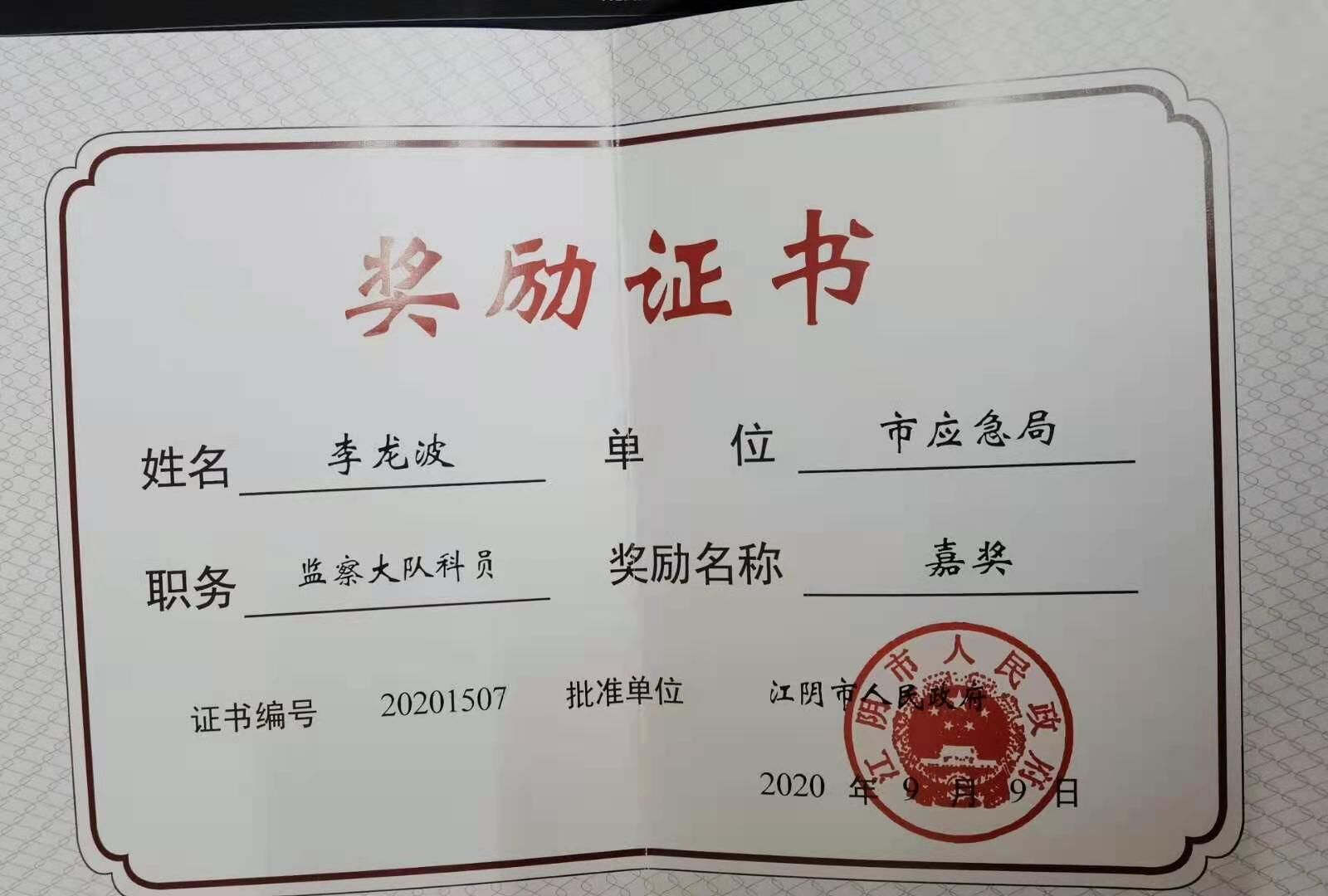 李龙波,江苏江阴人,中共党员。2008年-2012年,就读淮海工学院化工系安全工程专业,目前任江阴市应急管理综合行政执法大队副中队长。
