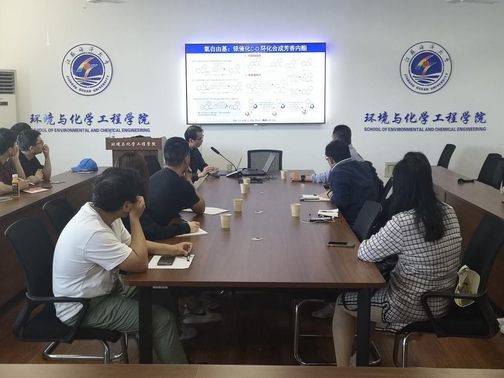 报告会上,戴博士从研究背景、研究思路、研究内容、研究工作总结和展望四个方面进行了详细的报告,着重介绍了联芳基羧酸氧自由基的环化内酯化反应、光催化烷基硼酸钾盐的自由基转化以及氮自由基介导的联烯分子间双胺化反应三方面的研究内容。最后指出自由基和过渡金属催化结合以及发展新的自由基生成方式是值得探索的一个领域。