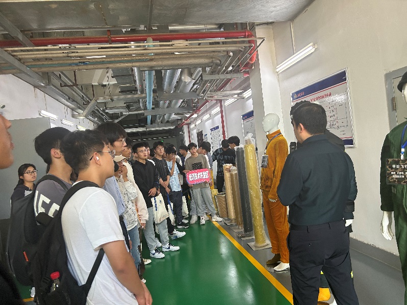 活动第一站,同学们来到江苏奥神新材料股份有限公司,副总经理郭涛全方位介绍了公司的发展历程、产品性能及应用领域、项目建设、未来规划等情况,接着参观了公司展厅和生产车间。参观期间,同学们对公司产品聚酰亚胺纤维展现出浓厚的兴趣,尤其对于聚酰亚胺纤维的本征阻燃特性充满了好奇,场面热烈、气氛融洽。同学们通过参观聚酰亚胺做成的各种后道制品如消防服、防护手套等,对高分子材料的应用有了更直观的了解。
