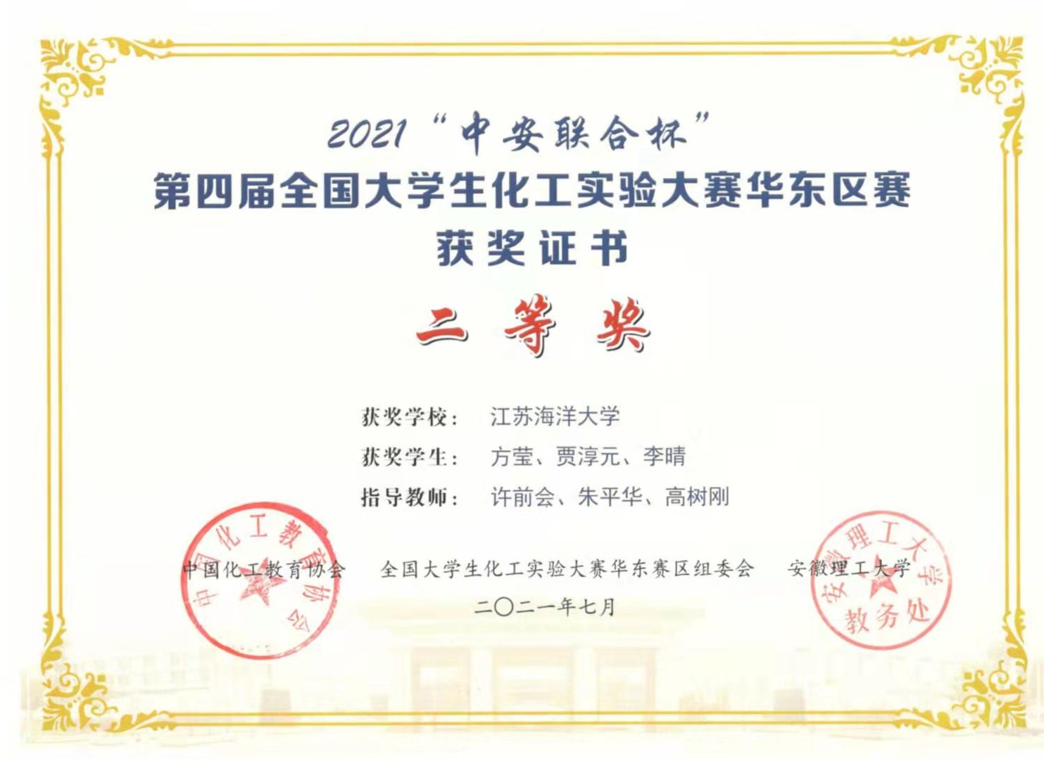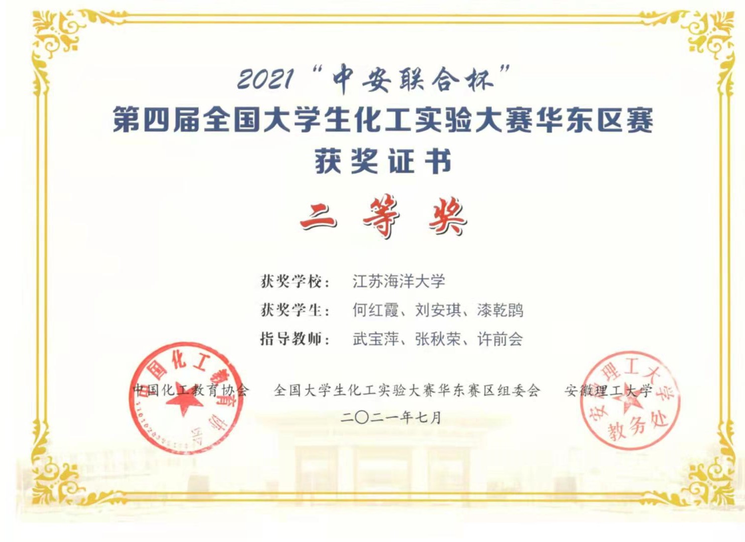 公司学子在2021“中安联合杯”第四届全国老员工化工实验大赛华东区赛喜获佳绩