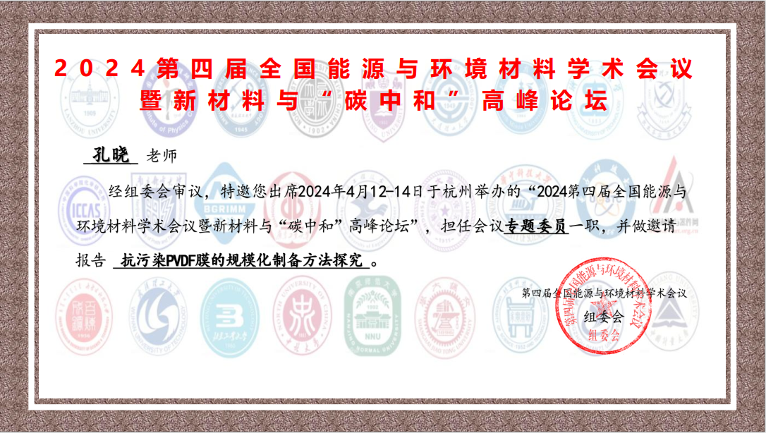 全国能源与环境材料学术会议暨新材料与“碳中和”高峰论坛是能源与环境领域内卓有成效的学术交流平台和新成果发布渠道。2024年4月12至15日,第四届全国能源与环境材料学术会议在杭州市召开,公司青年教师孔晓参加大会。