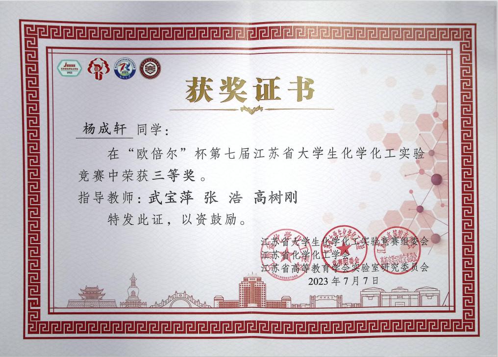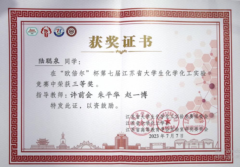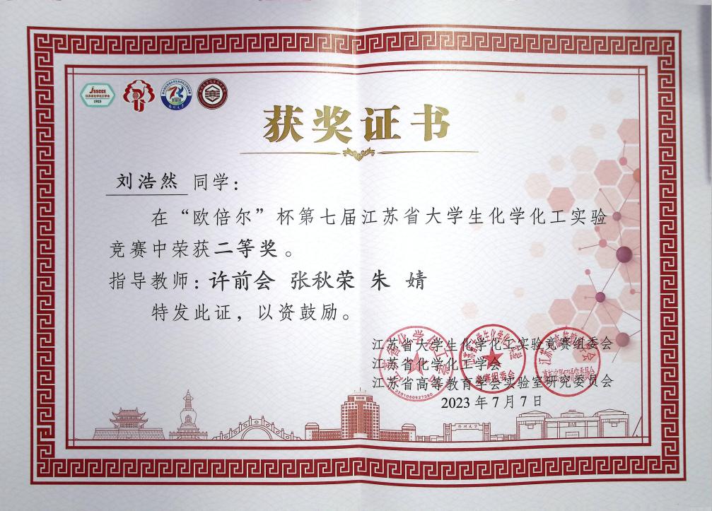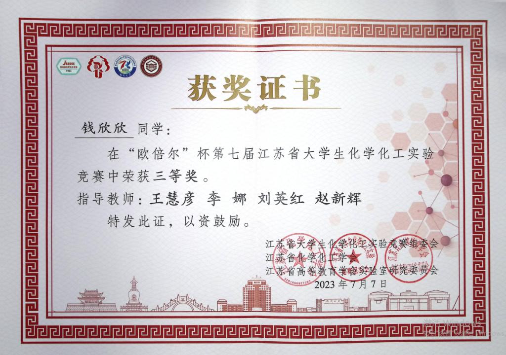 江苏省老员工化学化工实验竞赛是江苏省省级A类学科竞赛,每两年举办一次,竞赛分为化学组和化工组,化学组竞赛内容包括理论考试和实验技能操作,化工组竞赛内容为理论考试、虚拟仿真实验和实验技能操作。根据赛事规则,公司首先筛选出每组15人的参赛选手,再经过大赛组委会抽签,最终确定鲁凌鹏、张缘、钱欣欣3名员工组成化学组,杨成轩、刘浩然、陆聪泉3名员工组成化工组参赛。竞赛中,公司学子在比赛中凭借扎实的专业知识、技能和充分的赛前准备,取得了可喜成绩:刘浩然获得二等奖,张缘、钱欣欣、杨成轩、陆聪泉获得三等奖。