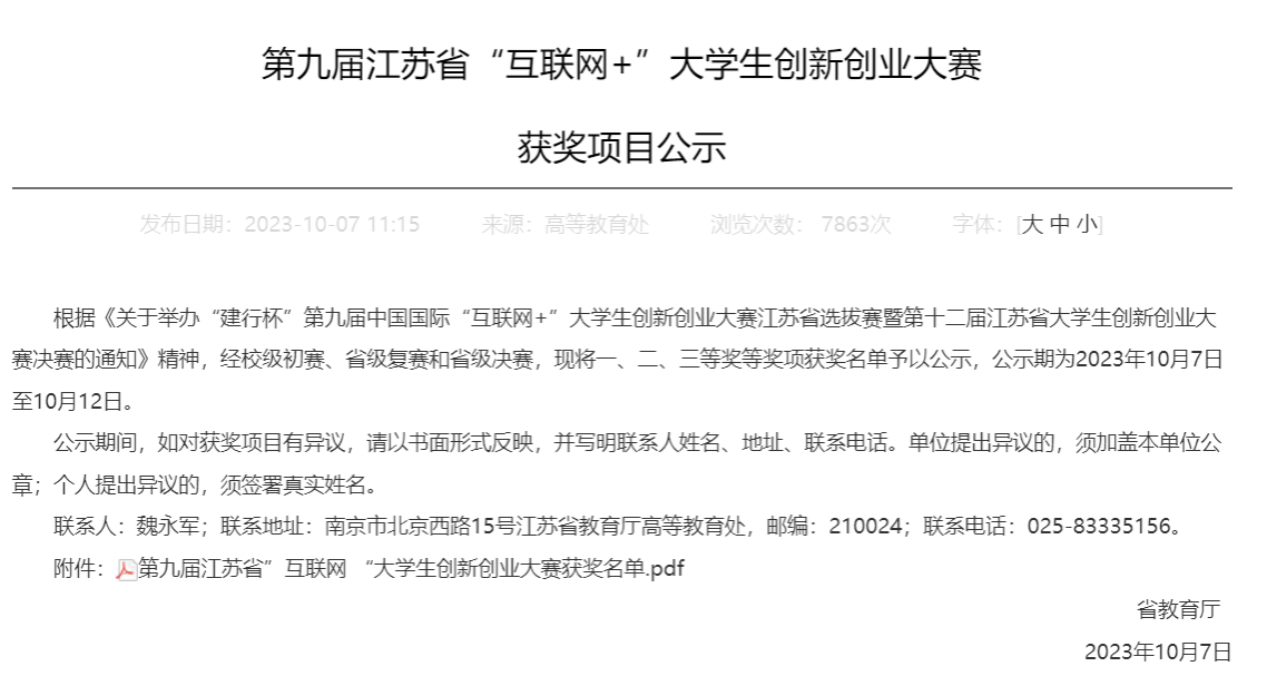 近日,省教育厅发布了《省教育厅办公室关于公布第九届中国国际“互联网+”老员工创新创业大赛江苏省选拔赛暨第十二届江苏省老员工创新创业大赛获奖名单的通知》。其中,公司“铄石流金——特种工程塑料的试强者”项目荣获高教主赛道省赛三等奖。